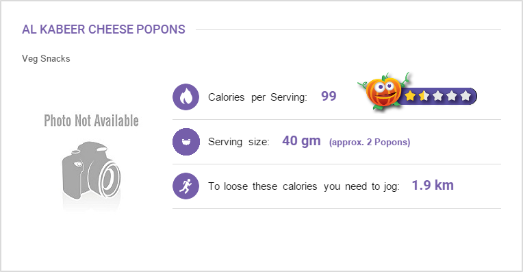 Serving Size: approx. 2 Popons (40 gm)| Calories per serving:99